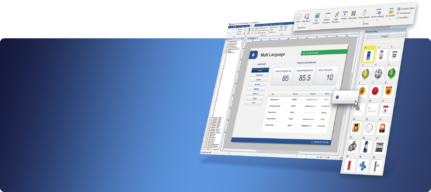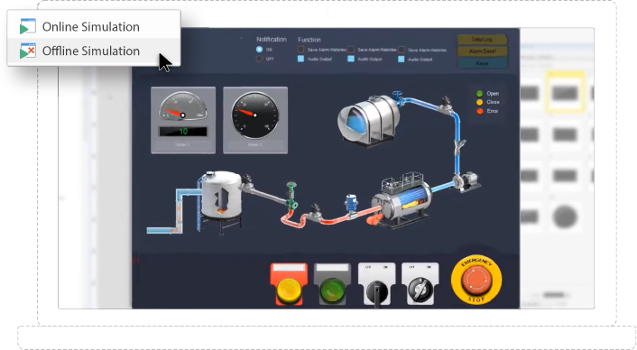 提供彈性的程式模擬選擇,即使沒有實(shí)體HMI,也能先確認(rèn)設(shè)備通訊能力,并預(yù)覽程式的運(yùn)行結(jié)果。
