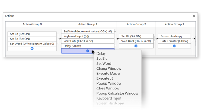 即使是復(fù)雜的連續(xù)動(dòng)作組合,都可以快速又簡(jiǎn)單地透過圖像化介面設(shè)定,且不必撰寫程式碼即可完成。